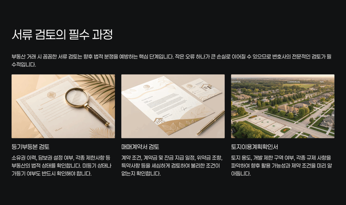 부동산 관련 서류는 작은 오기나 잘못된 표현 하나로 큰 문제가 발생할 수 있습니다 특히 매매계약서, 임대차계약서, 등기부등본 등 주요 서류들은 변호사를 통해 꼼꼼히 검토하고, 법적 문제나 불이익이 발생하지 않도록 주의 깊게 살펴야 합니다
