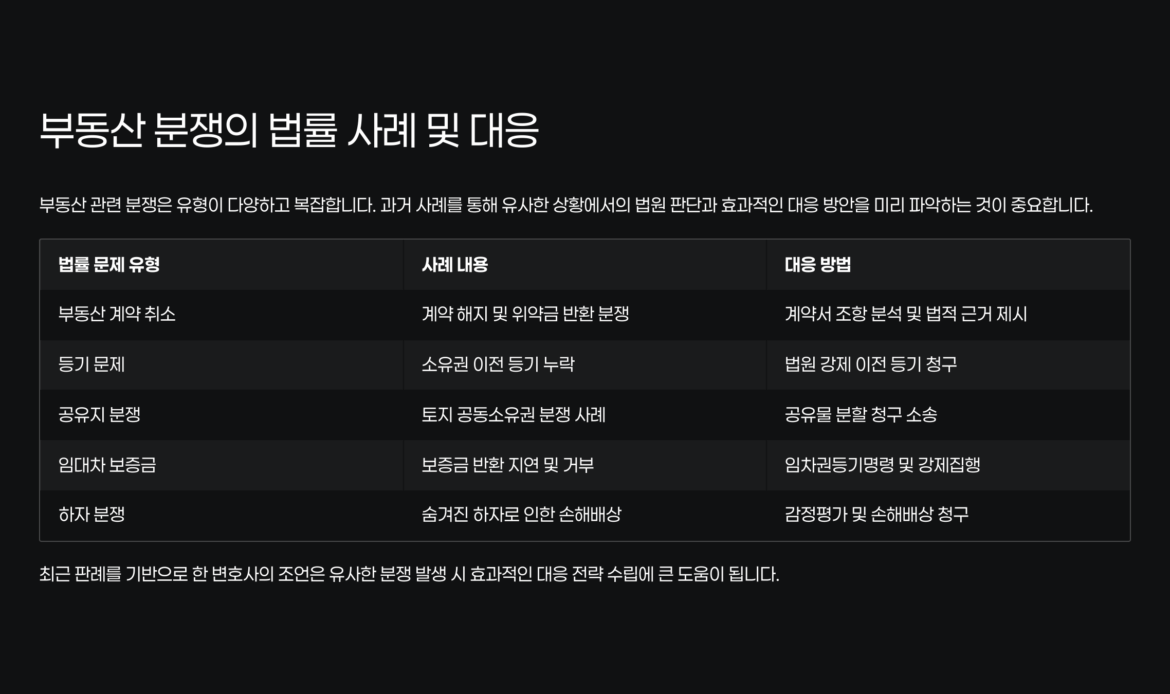 부동산 문제는 다양한 사례와 유형이 존재합니다 최근의 판례를 살펴보고 유사한 사례에 대한 변호사의 대응 방식을 미리 파악하는 것이 좋습니다 분쟁 발생 시 대응 방안을 사전에 정립하여 보다 신속하고 효과적으로 대응할 수 있습니다